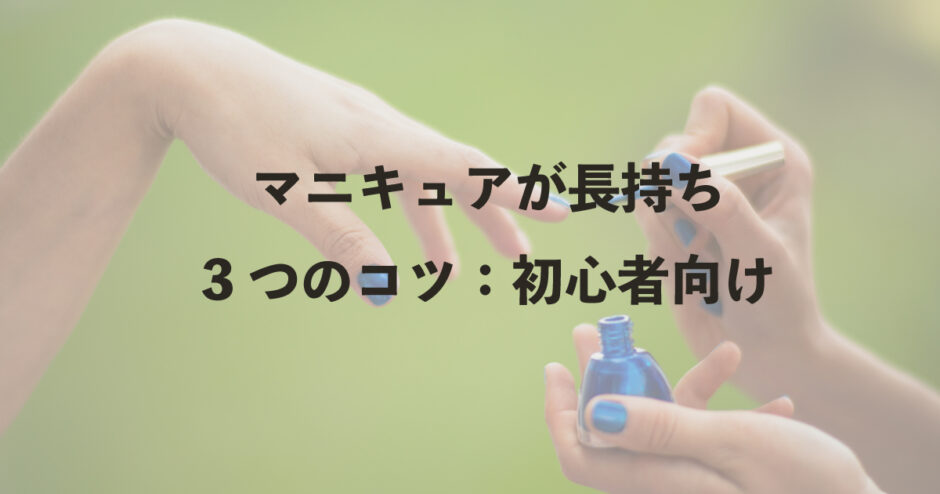 これらのポイントを押さえることで、マニキュアを長持ちさせ、美しい仕上がりを楽しむことができます。日常のちょっとしたケアで、マニキュアの持ちが大きく向上しますので、ぜひ試してみてください。